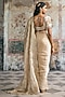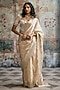 Featuring an ivory pre-draped saree in organza base. It is paired with an embroidered blouse. Accentuate with statement earrings and heels for a festive look, wedding or engagement ceremony.