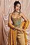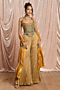 Featuring a multi-colored corset in silk blend base with embroidery. It is paired with a crinkled satin gharara and a dupatta. Accentuate it with statement jewellery and heels for festive occasions or wedding ceremony.