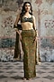 Featuring a multi-colored straight-cut draped skirt in modal satin base with print. It is paired with a blouse having print and embroidery, including a printed dupatta. Accessorise with statement jewellery and heels for a festive look and sangeet ceremonies.