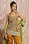Featuring a multi-colored kurta in silk blend base with embroidery. It is paired with palazzo pants and a soft tissue dupatta. Accentuate it with statement jewellery and heels for festive occasions or wedding ceremony.