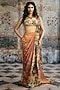Featuring a multi-colored pre-draped saree in tissue base with print. It is paired with an embroidered blouse. Accentuate with statement earrings and heels for a festive look, wedding or engagement ceremony.