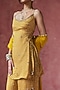 Featuring a mustard kurta in bandhani base with embroidery. It is paired with a sharara and a dupatta. Accentuate with statement earrings and heels for a festive occasion.