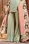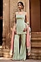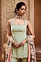 Featuring a pastel green short kurta in chanderi base with square neckline and mirror hand embroidery. It is paired with pants and a light pink georgette floral dupatta. Accentuate it with statement earrings and heels for a festive occasion or wedding ceremony.