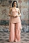 Featuring a peach kurta in georgette base with hand embroidery. It is paired with mirror-embroidered sharara pants and a sheer organza dupatta. Accentuate with statement jewellery and heels for a wedding or sangeet ceremony.