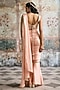 Peach Satin Georgette Draped Saree Set