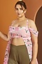 Featuring a pink kurta in cotton base with floral print and a wide front slit detail. It is paired with green pants. Accentuate it with statement jewellery and heels for festive occasions.