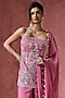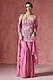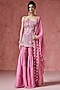 Featuring a pink kurta in georgette base with embroidery. It is paired with a sharara and a dupatta. Accentuate with statement earrings and heels for a festive occasion.