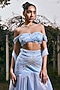 Powder Blue Stretch Satin & Shimmer Chiffon Hand Embroidered Ruched Lehenga Set