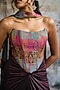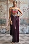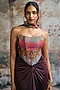 Featuring a multi-colored corset in silk brocade base with a sculpted neckline. It is paired with a purple shine spandex wrap skirt and a choker dupatta. Elevate this set with metallic heels and a statement clutch for a refined touch. Perfect for cocktail nights, engagement parties, or evening celebrations.