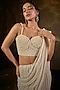 Featuring a white pre-draped mermaid saree in poly georgette base with pearl hand embroidery. It is paired with a blouse having a sweetheart neckline and hand embroidery. Accentuate it with statement earrings and heels for a wedding, sangeet or engagement ceremony.