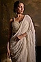 White Poly Georgette Pearl Hand Embroidered Pre-Draped Saree Set