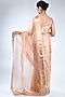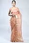 Featuring a peach pink handwoven banarasi saree in pure organza base with stripes and a zari border.