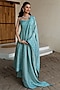 Featuring an aqua blue chikankari anarkali in vegan silk base. It is paired with pants and a dupatta. Style it up with dazzling dangler earrings and sculpted heels for any sangeet or engagement soiree.