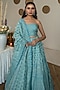 Aqua Blue Vegan Silk Floral Motifs Lehenga Set