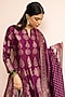 Featuring a berry and dark magenta anarkali in vegan silk base with zari gota weave detail. It is paired with salwar pants and a dupatta. Style it with polki earrings, block heels and an embellished clutch, perfect for diwali celebrations or cozy family get-togethers.
