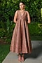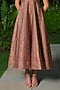 Featuring a brown dress in pure moonga silk base with floral weave details. Style it with delicate jewellery and strappy heels for a graceful look. Perfect for intimate gatherings, cocktail evenings, and grand soirees.