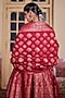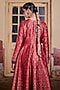 Featuring a deep red anarkali in vegan silk base with ajrakh detail. It is paired with pants and a dupatta. Accentuate it with polki earrings, juttis and a clutch bag for a festive look, family gathering or pooja ceremony.