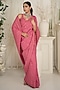 Featuring a fuchsia pink saree in vegan silk base with floral chikankari work. It is paired with a blouse and an underskirt. Let your style speak volumes, air dazzling statement jewels with sleek heels for an unforgettable entrance at any festive occasion, wedding or engagement celebration.