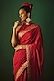Featuring a fuchsia pink saree in moonga silk base with woven zari work. It is paired with a blouse and an underskirt. Accentuate it with dangler earrings and heels for a festive occasion or wedding ceremony.