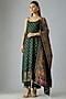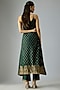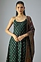 Featuring a bottle green spaghetti strap A-line kurta in moonga silk base with embroidery. It is paired with pants and a dupatta. Accentuate with statement jewellery and heels for any festive occasion or mehendi ceremony.