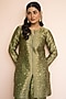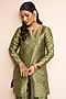Featuring a green short kurta in vegan silk base with paisley motifs and zari gota work. It is paired with floral woven pants. Accentuate it with statement earrings and block heels for festive occasions.