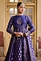 Featuring an indigo anarkali in vegan silk base with embroidery. It is paired with pants and a dupatta. Accentuate it with polki earrings, juttis and a clutch bag for a festive look, family gathering or pooja ceremony.