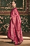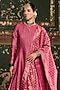 Featuring a magenta anarkali in premium vegan silk base with hand block print and floral motif detail. It is paired with pants and a dupatta. Accentuate it with kundan polki jewellery and juttis for festive occasions, wedding or sangeet ceremony.