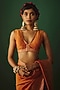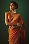 Featuring a mustard saree in moonga silk base with woven zari work. It is paired with a blouse and a petticoat. Accentuate it with dangler earrings and heels for a festive occasion or haldi ceremony.