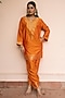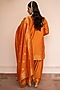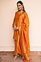 Featuring a mustard kurta in vegan silk base with zari gota weave detail. It is paired with salwar pants and a dupatta. Style it with polki earrings, block heels and an embellished clutch, perfect for diwali celebrations or cozy family get-togethers.