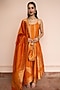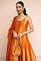 Featuring a mustard anarkali in vegan silk base with paisley motifs and zari gota weave detail. It is paired with pants and a dupatta. Style it with polki earrings, block heels and an embellished clutch, perfect for diwali celebrations or cozy family get-togethers.