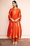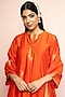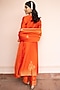 Featuring an orange kurta in vegan silk base with zari gota weave detail. It is paired with pants and a dupatta. Style it with polki earrings, block heels and an embellished clutch, perfect for diwali celebrations or cozy family get-togethers.