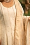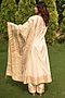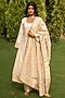 Featuring a pearl white anarkali in vegan silk base with thick golden zari border. It is paired with pants and a floral jaal dupatta having four-sided border, making it a perfect choice for any special occasion. Embrace the allure of rich craftsmanship and grace as you step into the spotlight wearing this enchanting designer anarkali set.