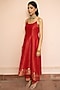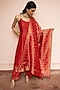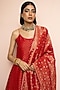 Featuring a red A-line kurta in vegan silk base with boota motifs and zari gota weave detail. It is paired with pants and a dupatta. Style it with polki earrings, block heels and an embellished clutch, perfect for diwali celebrations or cozy family get-togethers.