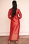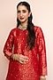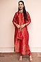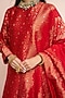Featuring a red straight kurta in vegan silk base with zari gota detailing. It is paired with churidar pants and a dupatta. Style it with polki earrings, block heels and an embellished clutch, perfect for diwali celebrations or cozy family get-togethers.