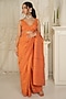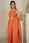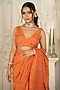 Featuring a tangerine saree in moonga silk base with floral chikankari work. It is paired with a blouse and an underskirt. Let your style speak volumes, air dazzling statement jewels with sleek heels for an unforgettable entrance at any festive occasion, wedding or engagement celebration.