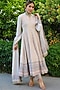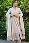 Featuring a white anarkali in vegan silk base with woven motifs. It is paired with matching pants and a dupatta.