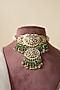Featuring a gold finish choker necklace studded with green kundan polki, set in mixed metal. It is paired with a matching pair of earrings. Add a touch of sparkle to your ensemble, perfect for wedding ceremonies or festive celebrations.