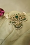 Featuring a gold finish choker necklace studded with green kundan polki, set in mixed metal. It is paired with a matching pair of earrings. Add a touch of sparkle to your ensemble, perfect for wedding ceremonies or festive celebrations.