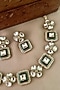 Featuring a gold finish enameled choker necklace studded with green kundan polki, set in mixed metal. It is paired with a matching pair of earrings. Add a touch of sparkle to your ensemble, perfect for wedding ceremonies or festive celebrations.