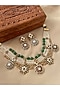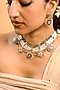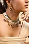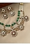 Featuring a gold finish temple choker necklace studded with green kundan polki, set in mixed metal. It is paired with a matching pair of earrings. Add a touch of sparkle to your ensemble, perfect for wedding ceremonies or festive celebrations.