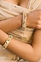 Featuring a pair of gold finish temple bangles studded with kundan polki and ghungroo, set in mixed metal. Add a touch of sparkle to your ensemble, perfect for wedding ceremonies or festive celebrations.