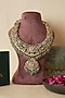 Featuring a gold finish choker necklace studded with kundan polki and green beads, set in mixed metal. It is paired with a matching pair of earrings. Add a touch of sparkle to your ensemble, perfect for wedding ceremonies or festive celebrations.