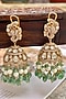 Featuring a pair of gold finish jhumka earrings studded with kundan polki and green beads, set in mixed metal. Add a touch of sparkle to your ensemble, perfect for wedding ceremonies or festive celebrations.