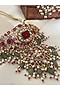 Featuring a gold finish choker necklace studded with multi-colored beads, kundan polki and pearls, set in mixed metal. It is paired with a matching pair of earrings. Add a touch of sparkle to your ensemble, perfect for wedding ceremonies or festive celebrations.