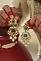 Featuring a gold finish choker necklace studded with kundan polki and pearls, set in mixed metal. It is paired with a matching pair of earrings. Add a touch of sparkle to your ensemble, perfect for wedding ceremonies or festive celebrations.