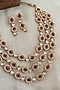 Gold Finish Kundan Polki & Ruby Layered Necklace Set
