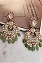 Gold Finish Multi-Colored Kundan Polki Chandbali Earrings