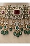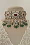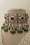 Featuring a gold finish choker necklace studded with multi-colored kundan polki, set in mixed metal. It is paired with a matching pair of earrings. Add a touch of sparkle to your ensemble, perfect for wedding ceremonies or festive celebrations.