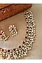 Featuring a gold finish temple choker necklace studded with red kundan polki, set in mixed metal. It is paired with a matching pair of earrings. Add a touch of sparkle to your ensemble, perfect for wedding ceremonies or festive celebrations.