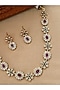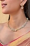 Featuring a gold finish temple choker necklace studded with red kundan polki and floral motifs, set in mixed metal. It is paired with a matching pair of earrings. Add a touch of sparkle to your ensemble, perfect for wedding ceremonies or festive celebrations.